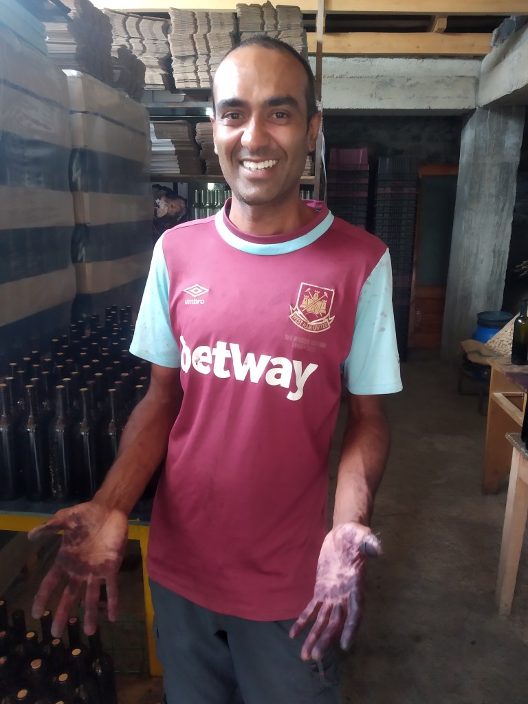 The vineyard was owned and run by a father (Kakha) and daughter (Keti) combo. Kakha was a professional violinist but 15 years ago gave it up, along with his life in Tbilisi, to start a vineyard. Keti joined him a few years ago and together they have a lovely home and produce beautiful wine. We know this because over the course of the 5 days we were there I drank more wine than I’ve ever drunk in my life. This wasn’t just because of their generosity but actually because of a small disaster they were having. They had bottled some of the wines a little too early which meant that some of the wines were still fermenting and still producing C02. This meant some of the corks on the bottles were literally popping off the wine bottles at random moments. We were helping them to uncork bottles which looked like they could potentially pop, spilling their precious wine. It was a hazardous job. At one point I was in the cellar picking up bottles to be taken upstairs when about three bottles popped right in front of me covering me in red wine. About 10 minutes later Kakha was downstairs and I heard some popping and some bottles smashing. I went downstairs to see Kakha bent over, picking up a few bottles which had flown off their racks. He got up and turned around and looked me in the eye. He was covered in wine, including his face. He looked like he had just committed a double homicide and the look on his face suggested that he knew that he wasn’t going to get away with it.